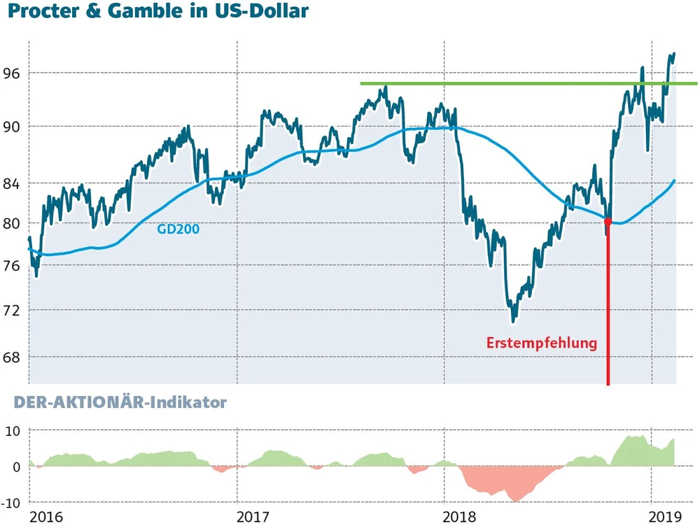 Dieses Krisendepot ist breit diversifiziert und enthält neben soliden Anleihen und Gold vor allem fundamental starke Aktien. Diese können Anleger im wöchentlich erscheinenden GebertBrief verfolgen. Eine davon ist der Verbrauchsgüterhersteller Procter & Gamble. Seit der Erstempfehlung im Oktober 2018 konnte die Aktie bereits über 27 Prozent steigen und dies gegenüber einem schwachen Gesamtmarkt. Dafür gesorgt haben vor allem starke Geschäftszahlen. Zwar stagnierte der Umsatz im Vergleich zum Vorjahreszeitraum bei 17,4 Milliarden Dollar im abgelaufenen Quartal. Dank Preiserhöhungen und einer starken Nachfrage nach Schönheitsprodukten steigerte sich aber der Gewinn um fünf Prozent auf 1,25 Dollar je Aktie.