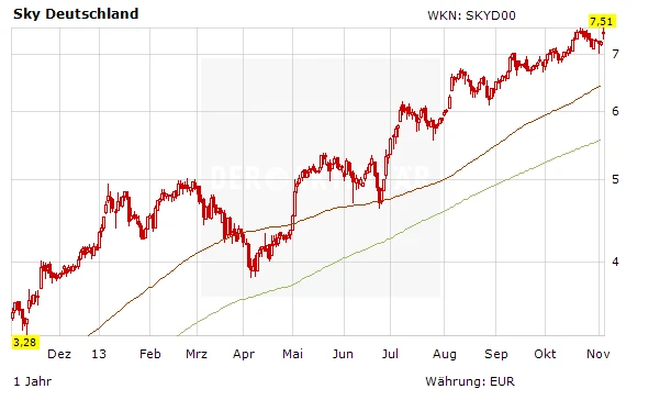DER AKTIONÄR hat bereits erklärt, dass sich die steigende Nachfrage nach dem Unterhaltungsangebot von Sky Deutschland in einer deutlichen Verbesserung der Ertragslage niedergeschlagen hat. Das dürfte sich auf Sicht nicht ändern. Die MDAX-Aktie dürfte damit ihren Höhenflug fortsetzen. Das nächste Kursziel wartet bei 8,00 Euro. Mittelfristig liegen 10,00 Euro im Rahmen des Möglichen.
