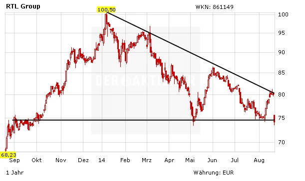Ein herber Gewinneinbruch im ersten Halbjahr hat die Aktie der RTL Group abstürzen lassen. Der Medienkonzern musste seine Prognosen für das Gesamtjahr senken. Auch die angekündigte Sonderdividende hat die Aktionäre dabei nicht besänftigt. Rund sieben Prozent verlor der MDAX-Titel im frühen Handel.
