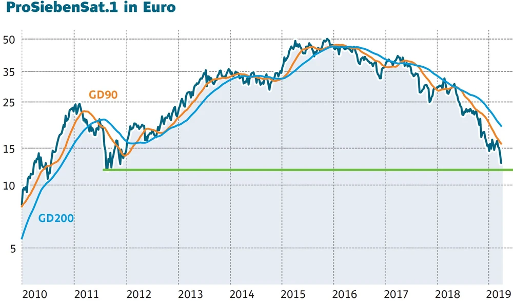 Operativ lassen sich derzeit allerdings wenig Kaufgründe für ProSiebenSat.1 finden, auch wenn die Aktie ein 2019er-KGV von nur 6 und eine Dividendenrendite von 9,5 Prozent aufweist. Die Aktie ist bestenfalls eine Heuschreckenwette.
