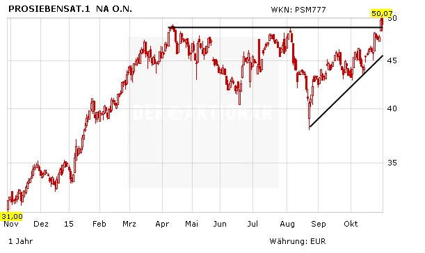 Auch die britische Investmentbank HSBC zeigte sich von den Ergebnissen beeindruckt. Analyst Christopher Johnen korrigierte den fairen Wert von 53 auf 55 Euro nach oben. Seine Empfehlung lautet weiterhin „Kaufen“. Das abermals starke Umsatzwachstum bestätige seine positive Sicht auf den Medienkonzern, schrieb der Experte. Die Konsensschätzungen für 2016 hätten noch deutlich Luft nach oben.