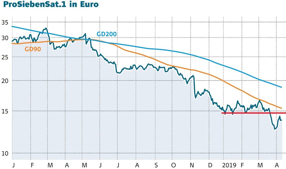 Die ProSiebenSat.1-Aktie holt derweil Luft. Trotzdem hat sich das Chartbild merklich verbessert. Die 38-Tage-Linie (14,83 Euro) könnte schon bald getestet werden. In diesem Bereich verläuft auch ein bedeutender horizontaler Widerstand. Gelingt das Break, rückt umgehend die 90-Tage-Linie als nächster prägnanter Widerstand in den Fokus. Gelingt auch dieses Break, gilt es, den GD200 zu knacken. Diese verläuft aktuell bei 18,76 Euro.