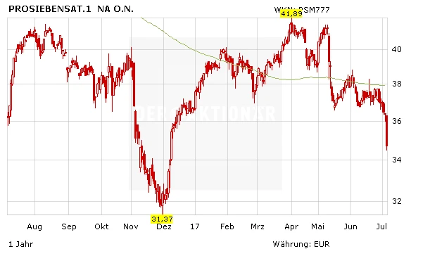 Bereits in Ausgabe 27/2017 hatte DER AKTIONÄR argumentiert, dass die bloße Fixierung auf die Entwicklung des TV-Werbemarkts in Anbetracht des gewandelten Geschäftsmodells nicht mehr angebracht ist. Entsprechend wird die heute losgetretene Verkaufswelle als übertrieben erachtet. Nichtsdestotrotz trübt sich das Chartbild dadurch deutlich ein – Anleger sollten daher den Stopp bei 33,50 Euro im Auge behalten.