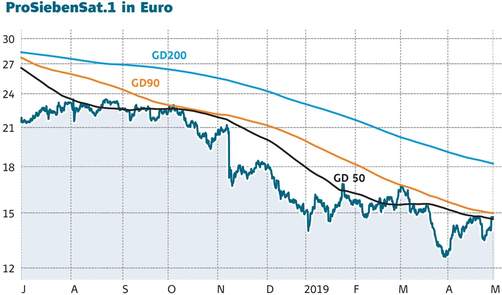 ProSiebenSat.1 im Rallyemodus. Am Donnerstagnachmittag klettert die Aktie um fünf Prozent auf 14,74 Euro. Mit dem Kurssprung setzen die Papiere ihre jüngste Stabilisierung nunmehr oberhalb der 50-Tage-Linie fort. Zudem nimmt die Aktie Kurs auf die 90-Tage-Linie.