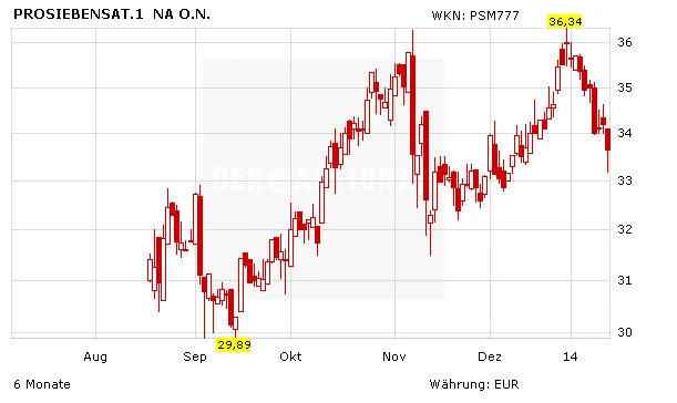 Bei den Analysten kommt die Aktie des Medienkonzerns derweil weiter blendend an. Die britische Großbank HSBC hat das Kursziel für die ProSiebenSat.1-Aktie noch einmal erhöht. Statt 40 Euro gibt HSBC-Analyst Christopher Johnen nun 42 Euro aus. Im Vergleich zum aktuellen Kursniveau entspricht dies einem Aufwärtspotenzial von rund 25 Prozent.