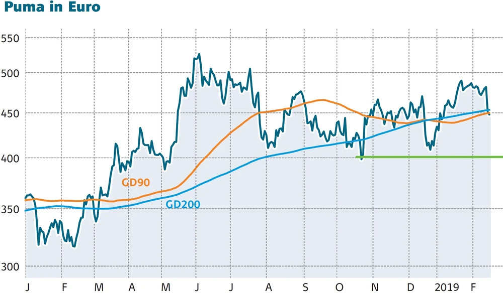 Puma ist immer noch stark unterwegs, die Marke top angesagt. Anleger sollten auf dem Schirm haben, dass das Management zu konservativen Prognosen neigt. 2017 und 2018 führte das dazu, dass CEO Bjørn Gulden die Jahresziele mehrfach nach oben korrigierte. Die Aktie ging daraufhin durch die Decke. Spätestens bei der Unterstützung im Bereich 400 Euro ergibt sich eine prima Kaufchance.