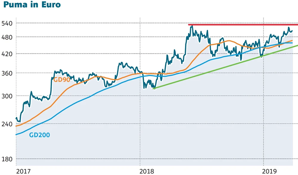 Puma ist derzeit bei den Kunden wieder in. War die Marke mit der Raubkatze vor einigen Jahren noch gegenüber Konkurrenten wie Nike und Adidas ins Hintertreffen geraten, hat sich der Wind nach einer Frischzellenkur gedreht. Der Absturz nach den Quartalszahlen ist längst verdaut. Der Chart sieht top aus.