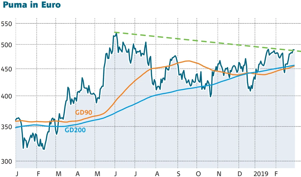 An der Börse kommt der Deal gut an – die Puma-Aktie gewinnt über ein Prozent. Jetzt kommt es darauf an, dass der Abwärtstrend nachhaltig gebrochen wird. Gelingt das Break, geht der Blick Richtung Rekordhoch bei 539 Euro.