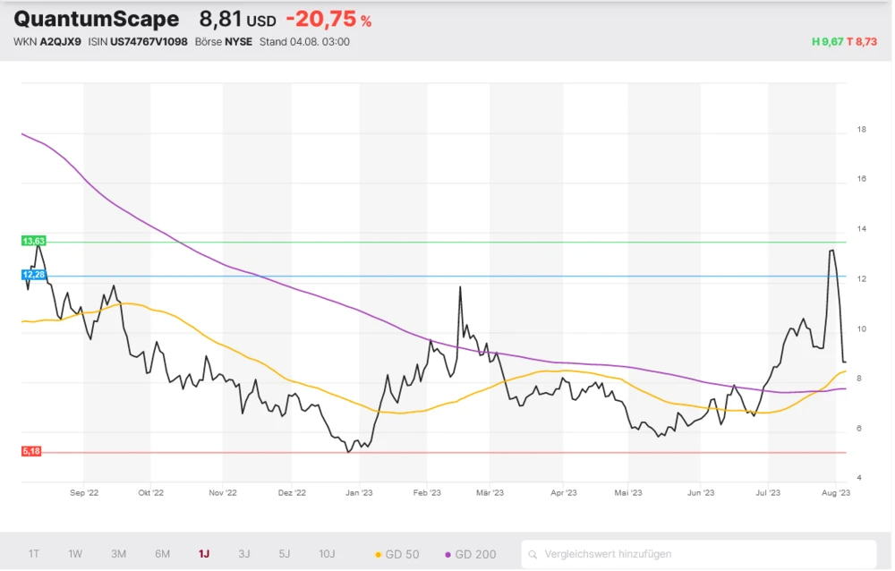 QuantumScape ist nur für hochspekulative Anleger einen Blick wert. Diese warten vor dem Einstieg zunächst die Details zur Kapitalmaßnahme ab, aktuell ergibt sich kein Handlungsbedarf. Sollte der Konzern zukünftig wesentliche Fortschritte bei der Kommerzialisierung der anodenfreien Festkörper-Batterietechnologie vorweisen, dürfte die Aktie positiv reagieren. Der Volkswagen-Konzern scheint an die Technologie zu glauben – die Wolfsburger zählen zu den Großaktionären von QuantumScape.
