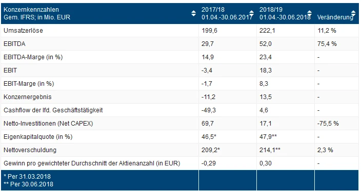 Basierend auf einem stabilen Markt- und makroökonomischen Umfeld sowie unterjährig gleichbleibender Wechselkurse bestätigt der Vorstand für das Geschäftsjahr 2018/19 die Prognose, die ein Umsatzwachstum von bis zu sechs Prozent bei einer EBITDA-Marge in der Bandbreite von 20 bis 23 Prozent vorsieht. Aufgrund der guten Entwicklung im ersten Quartal erwartet AT&S zu diesem Zeitpunkt, das obere Ende der genannten Bandbreiten zu erreichen.