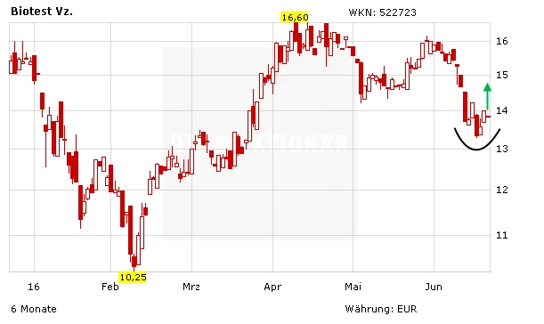 Nach dem jüngsten Rücksetzer hat sich die Aktie wieder stabilisiert. Mit dem nachhaltigen Sprung über die 16-Euro-Marke würde ein neues Kaufsignal mit Ziel 19 Euro generiert. In diesem Bereich sieht auch Torben Teichler von Hauck & Aufhäuser die Aktie fair bewertet. Das Unternehmen sei gut in das Jahr gestartet, so der Analyst vor wenigen Wochen. Die Resultate untermauerten seine Einschätzung, dass das SDAX-Unternehmen mit seiner strategischen Neupositionierung den Weg in die richtige Richtung gehe. DER AKTIONÄR spekuliert daher im Real-Depot auf steigende Kurse bei den Biotest-Vorzugsaktien.