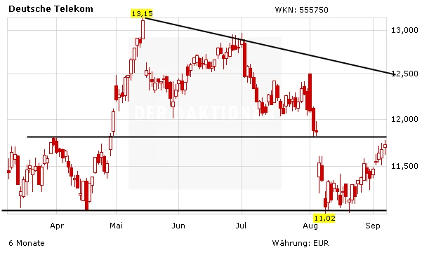 Der Telekommunikationsmarkt steht weiter im Umbruch. Die Deutsche Telekom versucht mit Komplettpaketen wieder auf Wachstumskurs zu gelangen. Charttechnisch betrachtet hat zuletzt die wichtige Unterstützung bei der 11-Euro-Marke gehalten. Der gute Newsflow dürfte der Aktie weiteren Auftrieb verleihen. DER AKTIONÄR spekuliert im Real-Depot auf weiter steigende Kurse.