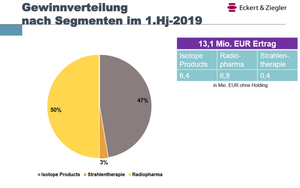 Den größten Wachstumsschub verzeichnete zuletzt das Radiopharmasegment, das im Wesentlichen getrieben durch weiter anziehende Umsätze mit pharmazeutischen Radioisotopen seine Verkäufe im ersten Halbjahr um 41 Prozent auf 21,7 Millionen Euro steigerte. Der operative Kapitalfluss stieg im ersten Halbjahr um 9,1 Millionen auf 14,2 Millionen Euro ebenfalls deutlich an.