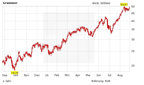 Grammer überzeugt mit starken Zuwächsen bei Umsatz und Gewinn. Technische Weiterentwicklungen der Innenausstattung von Autos und Nutzfahrzeugen dürften auch in Zukunft für frische Impulse sorgen. Abgerundet wird das Bild durch einen gehörigen Schuss Übernahmefantasie.