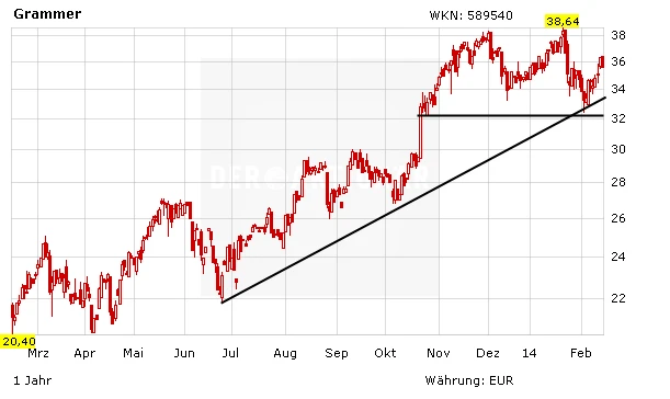 Die Gegenbewegung ist in vollem Gange. Nachdem die Grammer-Aktie Ende Januar deutlich unter Druck geraten war, hat die Aktie bei einer wichtigen Unterstützung wieder nach oben gedreht. Damit beginnt nun ein neuer Angriff auf das Allzeithoch bei rund 38,70 Euro.