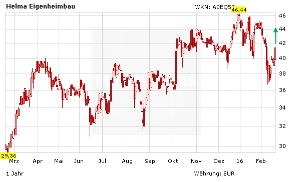 Die Aktie von Helma Eigenheimbau befindet sich wieder im Aufwind. Kein Wunder: Bei dem Real-Depot-Wert stehen spannende Termine auf der Agenda. Anfang März wird der Baudienstleister die vorläufigen Ergebnisse für das Geschäftsjahr 2015 sowie eine aktualisierte mittelfristige Planung bekannt geben. Spätestens dann dürfte die Aktie wieder Kurs auf die 50-Euro-Marke nehmen.