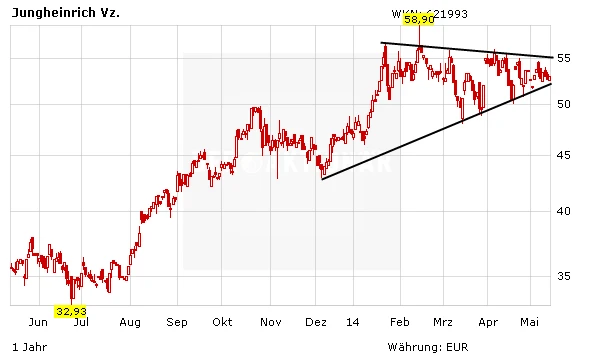Seit Beginn des Jahres bewegt sich die Jungheinrich-Aktie in einem Seitwärtskanal zwischen 50 und 56 Euro. Trotz der guten Zahlen konnte dieser Trend noch nicht nach oben durchbrochen werden. Ein Ausbruch sollte jedoch nicht mehr lange auf sich warten lassen. DER AKTIONÄR spekuliert im Real-Depot mit Hebel 4 auf dieses Szenario.