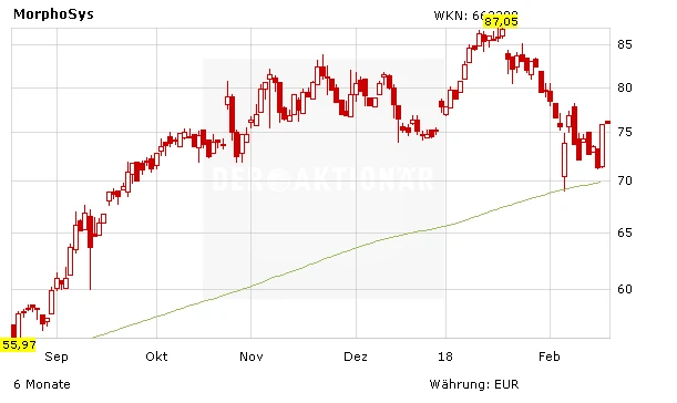 Zuletzt war es nachrichtentechnisch recht ruhig um die Aktie von Morphosys geworden. Einige Anleger wurden ungeduldig und nahmen Gewinne mit. Zudem sorgten einige Leerverkäufer für Druck. Am Wochenende meldete Morphosys nun auf der amerikanischen Dermatologie-Konferenz AAD starke News aus seinem Gemeinschaftsprojekt mit Galapagos MOR106 bei Patienten mit atopischer Darmatitis. MOR106 ist ein gegen das Zielmolekül IL-17C gerichteter therapeutischer Antikörperwirkstoffkandidat. In der jetzt vorgestellten Phase-1-Studie wurden erste Anzeichen anhaltender klinischer Aktivität sowie eine im Allgemeinen gute Verträglichkeit von MOR106 bei Patienten beobachtet. Im September 2017 waren bereits erste Studienergebnisse zu MOR 106 veröffentlicht worden.