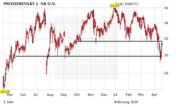 Durch die Abwärtsbewegung ist die ProSiebenSat.1-Aktie zuletzt unter die Unterstützung bei 32 Euro gefallen. Am Donnerstag zählen die Papiere nun zu den stärksten Werten und dürften diese Marke bald wieder angreifen. Das aktuell noch niedrige Niveau können Anleger für einen Einstieg nutzen. DER AKTIONÄR setzt im Real-Musterdepot mit einem Mini-Long auf steigende Kurse.