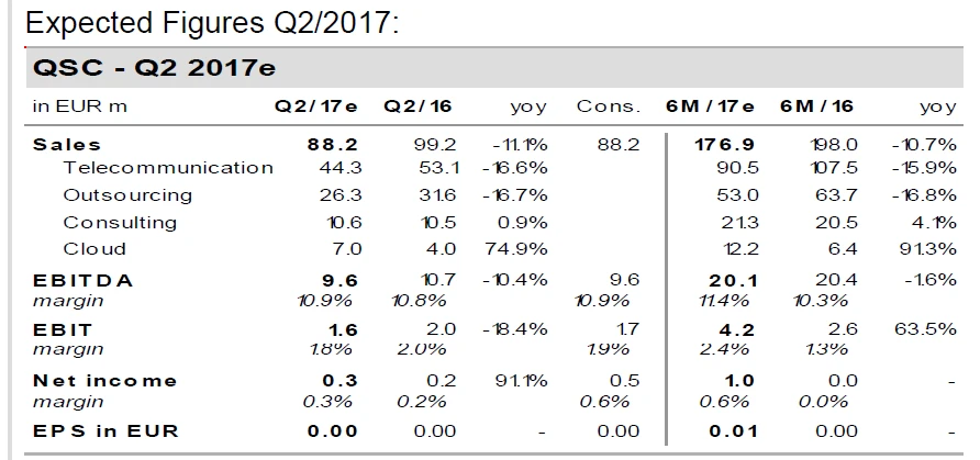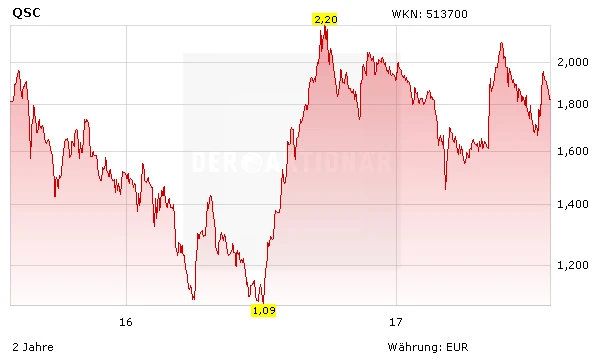 An der Prognose für das Gesamtjahr dürfte der Vorstand vorerst festhalten. Für 2017 rechnet QSC mit Umsätzen zwischen 355 bis 365 Millionen Euro und das EBITDA wird bei 36 bis 40 Millionen Euro gesehen.