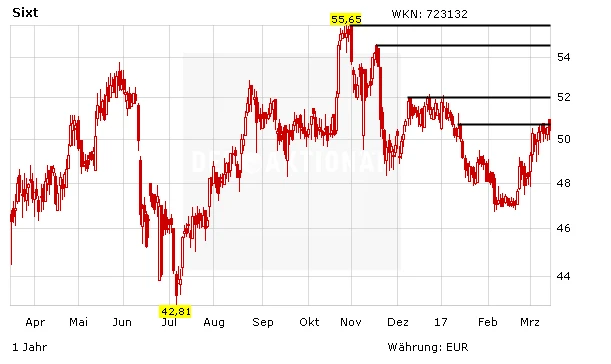 Auch der Ausblick passt: Sixt geht für das Jahr 2017 entsprechend der prognostizierten gesamtwirtschaftlichen Entwicklungen in seinen Kernmärkten von einer weiter steigenden Nachfrage im Geschäftsbereich Autovermietung aus, die weiterhin wesentlich vom Auslandsgeschäft getragen wird. Vor diesem Hintergrund erwartet der Vorstand für das laufende Jahr auf Konzernebene einen leicht steigenden operativen Umsatz und ein stabiles bis leicht steigendes Ergebnis vor Steuern.