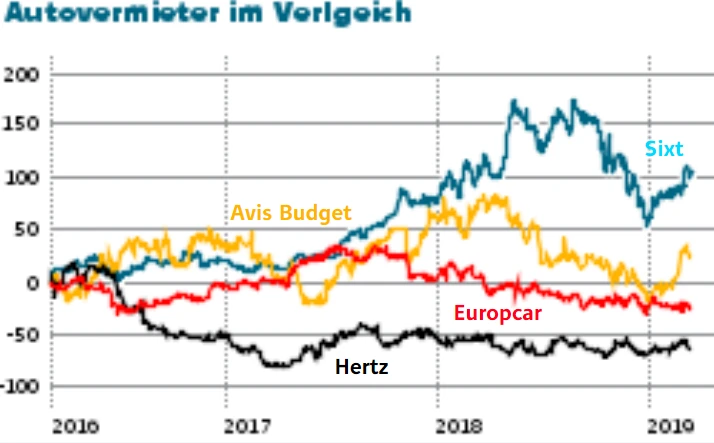 Auf dem Parkett hat Sixt seine US-Wettbewerber Avis und Hertz und den europäischen Anbieter Europcar in den vergangenen drei Jahren bereits kräftig abgehängt: