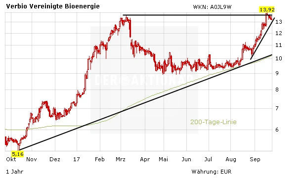 Die Verbio-Aktie hat in den vergangenen Wochen ohne Nachrichten von Unternehmensseite rund 40 Prozent zugelegt. Fundamental dürften die Leipziger die im Januar nach oben geschraubten Jahresziele erreichen beziehungsweise übertreffen. Entscheidend für den Kursverlauf der Aktie werden aber wohl die Neuigkeiten zum weiteren Fahrplan von Verbio.
