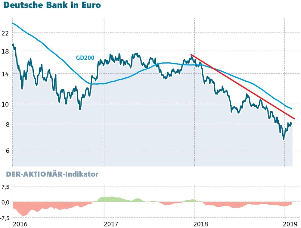 Auch charttechnisch spricht derzeit wenig für ein Investment in die Aktien der Deutschen Bank. Der seit Anfang vergangenen Jahres vorherrschende Abwärtstrend ist noch immer intakt. Die 200-Tage-Linie bei 9,49 Euro ist noch einiges entfernt. DER AKTIONÄR rät von einem Engagement derzeit ab.