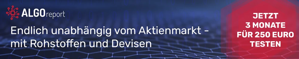 Als Leser erhalten Sie einen ausführlichen 14-täglichen Report via E-Mail sowie über einen exklusiven SMS-Signaldienst alle notwendigen Handlungsempfehlungen und Informationen, um die ALGO-Trades 1:1 abzubilden. Die Reports enthalten neben einer Watchlist mit den ausgeworfenen ALGO-GT-Signalwerten und unseren Einschätzungen bezüglich der weiteren Indikatoren ein Optionsscheindepot, Empfehlungen zu Futures und Aktien und viele zusätzliche Informationen aus der Welt der Rohstoffe, die Sie nach und nach selbst zu Experten werden lassen.
