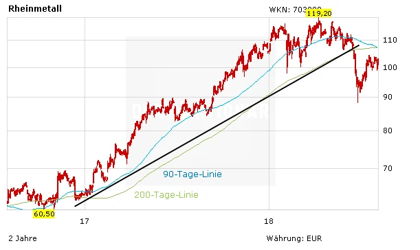 Die Rheinmetall-Aktie sah sich in den vergangenen Monaten nach einer fulminanten Kursentwicklung einer scharfen Korrektur ausgesetzt. Marktfaktoren wie die Unsicherheiten über mögliche US-Importzölle sowie die Auswirkungen der neuen Abgas- und Verbrauchsstandards WLTP wirkten sich negativ auf den Konzern aus.