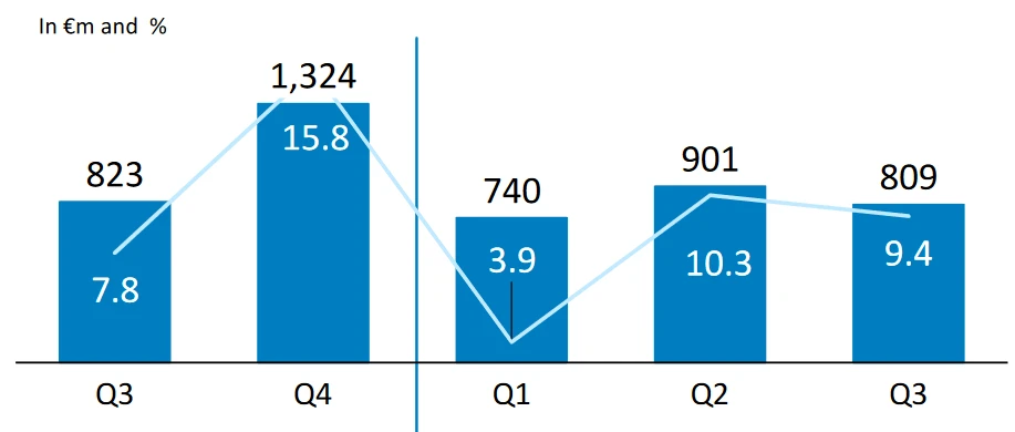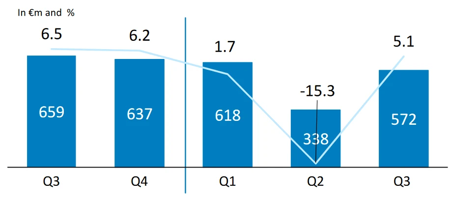 Im dritten Quartal ging der Konzernumsatz bei Rheinmetall rund sieben Prozent auf 1,38 Milliarden Euro zurück. Die operative Marge stieg jedoch von 6,7 auf 7,3 Prozent, weshalb das operative Ergebnis um zwei Millionen auf 101 Millionen Euro zulegte. Unter dem Strich blieben 49 Millionen Euro hängen – vor einem Jahr waren es noch 60 Millionen Euro.