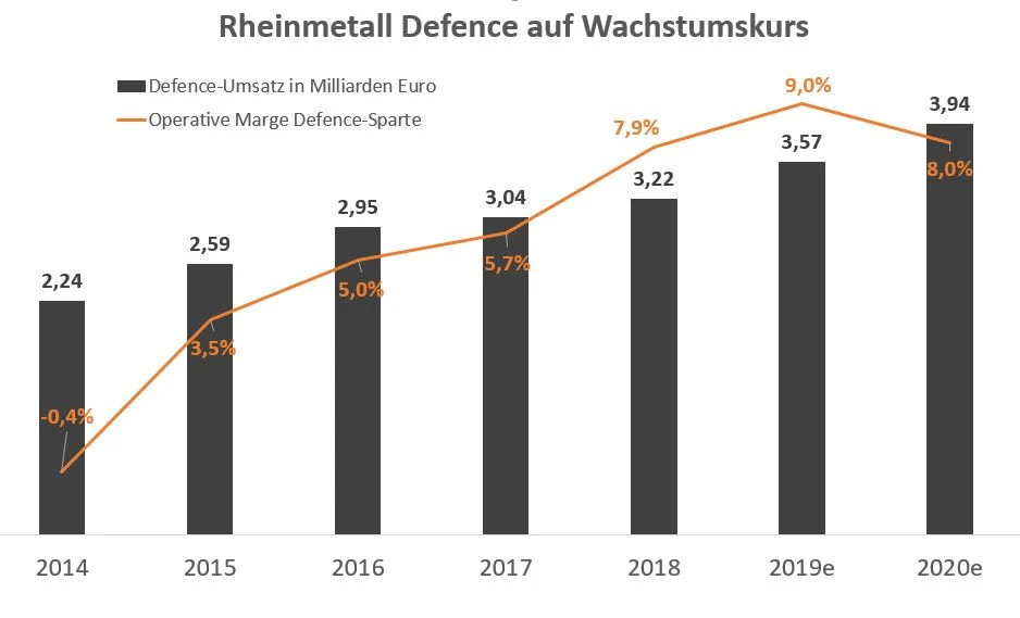 Seit dem Beginn der Krim-Krise 2014 hat sich das weltweite Bewusstsein für Verteidigungs- und Rüstungsausgaben deutlich verändert. Hinzu kommt seit 2017 US-Präsident Donald Trump, der immer wieder höhere Rüstungsbudgets von seinen Verbündeten fordert. Das zahlt sich aus: Noch 2014 schrieb die Defence-Sparte von Rheinmetall rote Zahlen, inzwischen ist das Geschäft hochprofitabel und steuert im laufenden Jahr erstmals mehr zum operativen Ergebnis bei als die Automotive-Sparte. Die Auswirkungen eines Türkei-Embargos auf die Ergebnisse dürften dabei kaum ins Gewicht fallen.