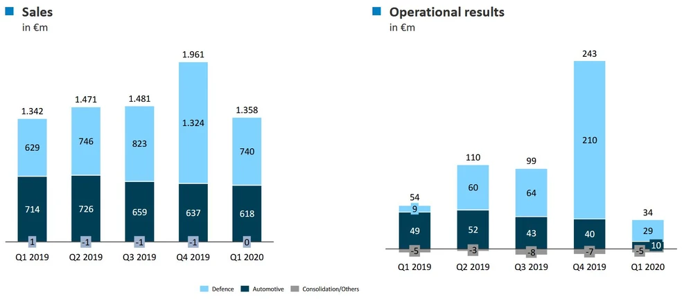 Die Schwäche hat vor allem mit der Automotive-Sparte zu tun. Hier schrumpften die Erlöse um 13,5 Prozent. Die operative Marge brach von 6,9 Prozent auf 1,7 Prozent regelrecht ein. Aufgrund der Schwäche des Automobilsektors ist eine Prognose für das laufende Jahr zudem nicht mehr möglich. „Bei Automotive mussten wir unsere Produktion wie alle Automobilzulieferer deutlich einschränken. Das wird uns vor allem im zweiten Quartal erheblich belasten“, so Konzernchef Armin Papperger.