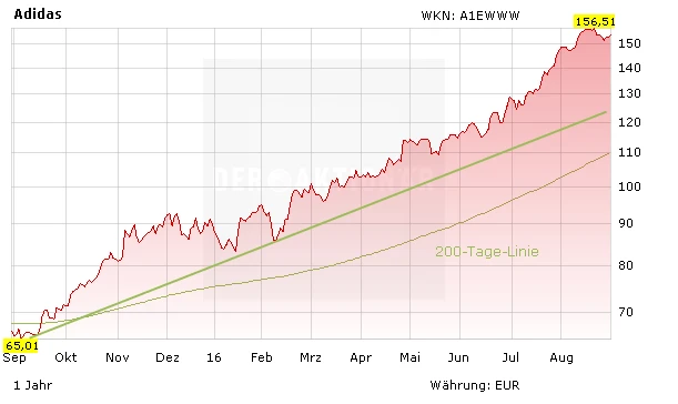 Adidas liefert nicht nur wie am Fließband Sportartikel aus, sondern auch gute Nachrichten für die Aktionäre. Die Rekord-Aktie steht kurz vor dem Aufstieg in den EuroStoxx 50. Wird die Aktie auch jubeln?