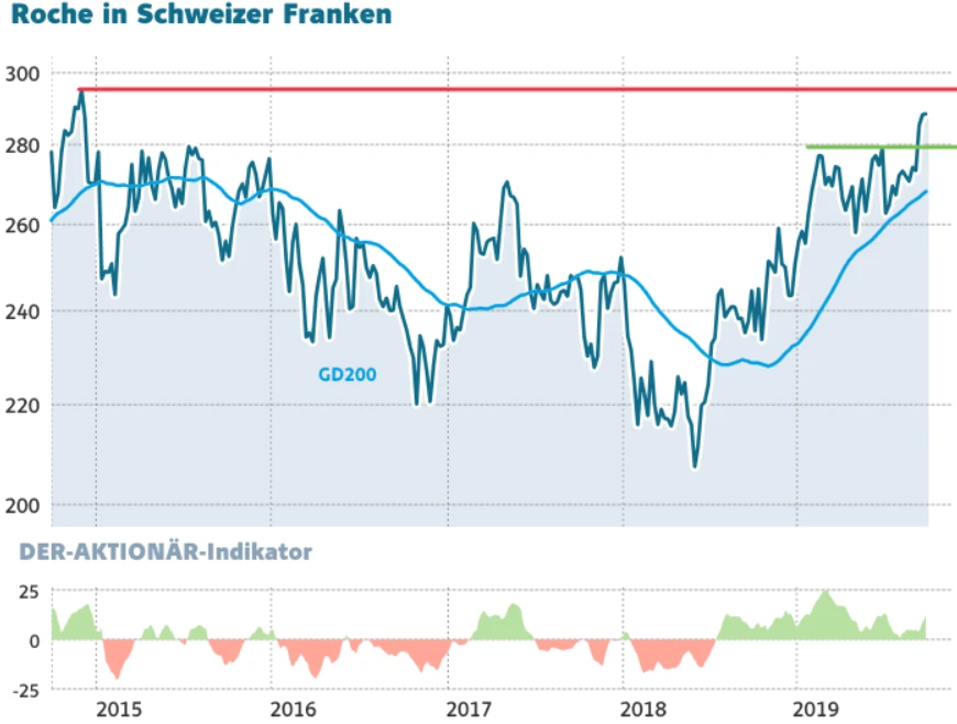 Kein Wunder, dass die Aktie von Roche derzeit von einem Hoch zum nächsten steigt. Am Freitag hat das Papier den höchsten Stand seit mehr als vier Jahren erreicht. Das Allzeithoch bei 295,80 Schweizer Franken ist jetzt in unmittelbarer Reichweite. Gelingt Roche der Sprung über diesen wichtigen Widerstand, wäre dies ein massives Kaufsignal. DER AKTIONÄR rät weiter dazu, die Gewinne laufen zu lassen. Schöner Bonus: Die attraktive Dividendenrendite von derzeit mehr als drei Prozent.