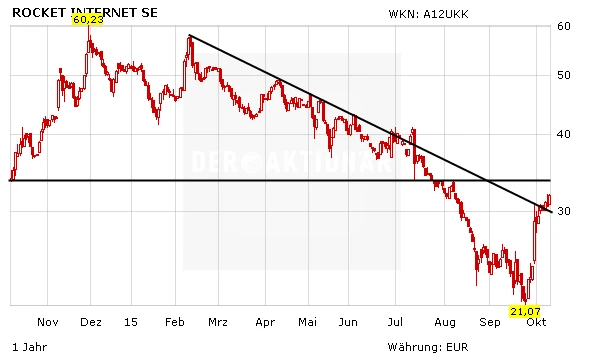 Auch DER AKTIONÄR bleibt optimistisch für die Rocket-Internet-Aktie und setzt im Aktien-Musterdepot weiterhin auf steigende Kurse. Wie die Halbjahreszahlen zeigten, scheinen sich die Rocket-Beteiligungen sehr gut zu entwickeln. Seit dem Börsengang stieg der Wert der Beteiligungen Konzernangaben zufolge um 3,4 Milliarden Euro. Auch charttechnisch hat sich die Situation verbessert. Der Abwärtstrend wurde gebrochen. Die Aktie bleibt vor allem für Mutige interessant.