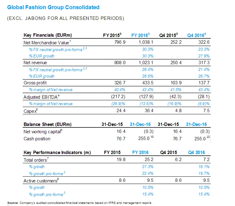 Die Rocket-Internet-Beteiligung Global Fashion Group (GFG) hat am Mittwoch Zahlen für das Geschäftsjahr 2016 vorgelegt. Auch wenn der Umsatz gesteigert und die Verluste eingedämmt wurden – positive Impulse für die gebeutelte Rocket-Aktie können sie nicht liefern.