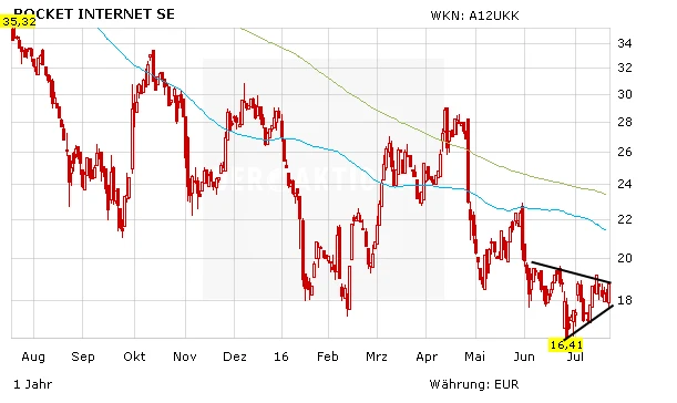 Die Aktie von Rocket Internet wird für die neue Investmententscheidung heute mit einem Plus von vier Prozent belohnt. Langsam aber sicher erholt sich die Aktie von dem Tief bei 16,41 Euro, das die Aktie Ende Juni erreicht hat. Trotzdem ist der Abwärtstrend noch nicht gebrochen. Anleger sollten für einen Neueinstieg eine Trendwende abwarten.