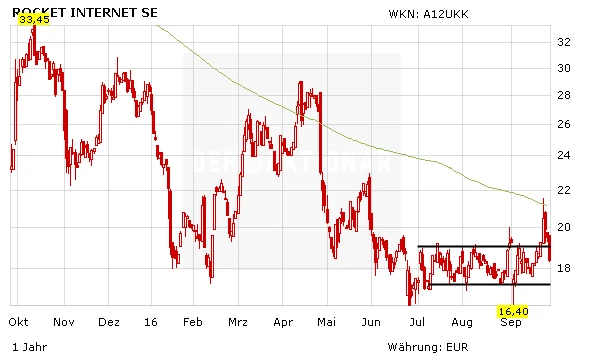 Der Kurs ist in dem seit Anfang Juni gültigen Seitwärtstrend zurückgefallen, den er in der Vorwoche kurzzeitig nach oben verlassen hatte. Dabei ist er auch unter Stoppkurs gefallen, der nach dem jüngsten Erholungsversuch auf 19 Euro nachgezogen worden war. Trader sollten die Position nun vorerst schließen, die Rocket-Aktie bleibt aber auf der Watchlist.