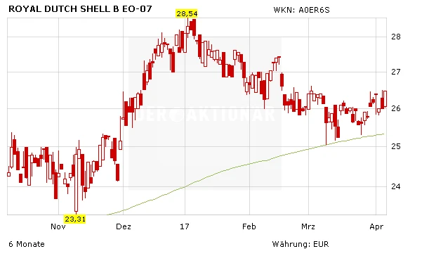 DER AKTIONÄR bleibt indes für die günstig bewertete Aktie von Royal Dutch Shell nach wie vor zuversichtlich gestimmt und rät zum Kauf der Dividendenperle. Der Stoppkurs sollte bei 20,50 Euro belassen werden.