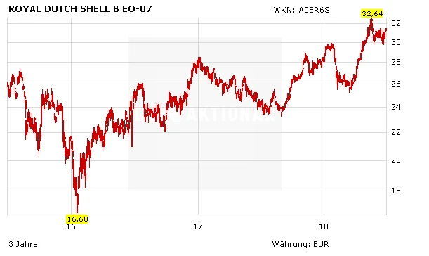 Auch DER AKTIONÄR bleibt für die Aktie von Royal Dutch Shell unverändert zuversichtlich gestimmt. Die Anteile sind angesichts einer Dividendenrendite von satten 5,3 Prozent und der Tatsache, dass die Dividende seit 1945 nicht mehr gesenkt wurde, ein sehr guter Festgeldersatz für Mutige. Der Stoppkurs sollte bei 24,00 Euro belassen werden.