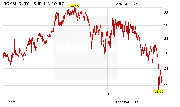 Auch DER AKTIONÄR bleibt für die Aktie von Royal Dutch Shell positiv gestimmt. Der Konzern bleibt vor allem dank des starken Standbeins im auch bei niedrigen Ölpreisen profitablen Raffinerie- und Tankstellengeschäft hochprofitabel. Die Bewertung ist mit einem 2015er-KGV von 12, einem KBV von 0,9 und einer Dividendenrendite von 7,4 Prozent sehr attraktiv. Die Aktie bleibt ein Kauf, der Stopp sollte bei 18,50 Euro platziert werden.