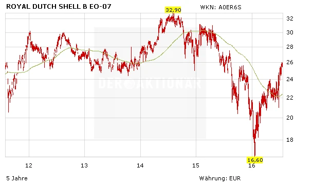 Das Wirtschaftsmagazin Barron's hat sich zuletzt intensiv mit der Aktie des britisch-niederländischen Energieriesen Royal Dutch Shell befasst. Ihr Ergebnis: Shell ist „the world's best big oil stock". Nach Ansicht der Experten sollte die Aktie selbst bei stagnierenden Ölpreisen mehr als 20 Prozent zulegen.