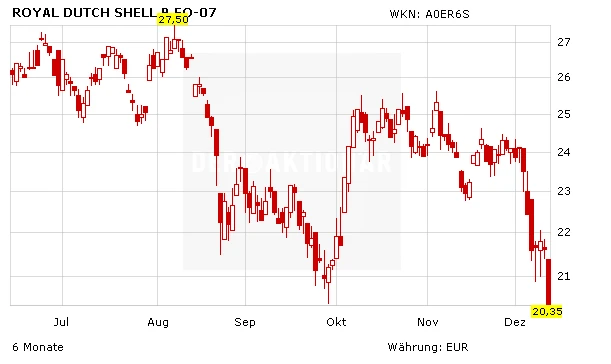 Die OPEC hat entschieden, die Förderquote trotz des vorhandenen Überangebots an Öl auf nun offiziell 31,5 Millionen Barrel pro Tag – meist wird ohnehin noch mehr gefördert – zu versorgen. Dies hat die Ölpreise auf ein neues Mehrjahrestief gedrückt und belastet auch die Aktien von Energieriesen wie Royal Dutch Shell. Analysten bleiben aber zuversichtlich.