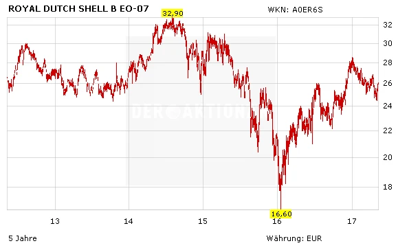 DER AKTIONÄR hält nach wie vor an seiner Kaufempfehlung für die Shell-Aktie fest. Die günstig bewerteten Titel des Qualitätsunternehmens bestechen mit der hohen und seit 1945 nicht mehr gesenkten Dividende, welche Anlegern aktuell 6,6 Prozent bietet, bleiben ein attraktiver Festgeldersatz. Der Stopp sollte bei 20,50 Euro belassen werden.