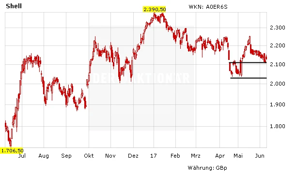 Für weniger risikofreudige Anleger bietet sich eher an, die Füße still zu halten und abzuwarten. Selbst im Falle eines deutlichen Kursrückgangs beim Ölpreis dürfte sich die Shell-Aktie in Anbetracht der angesprochenen Diversifizierung relativ robust präsentieren. Bereits investierte Anleger beachten den Stopp bei 20,50 Euro. Wer nicht investiert ist, kann mit dem Kauf noch etwas abwarten und womöglich etwas günstiger bei der Dividendenperle zugreifen.