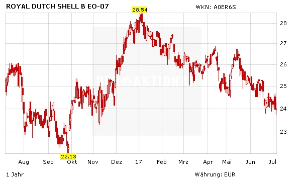 Die Aktie von Royal Dutch Shell bleibt daher für Dividendenfans weiterhin ein klarer Kauf. Der Stoppkurs sollte bei 20,50 Euro belassen werden. Noch nicht investierte Anleger können vor einem Einstieg noch eine Aufhellung des Chartbildes abwarten (und belassen dabei den nächsten Dividenden-Stichtag am 10. August im Auge).