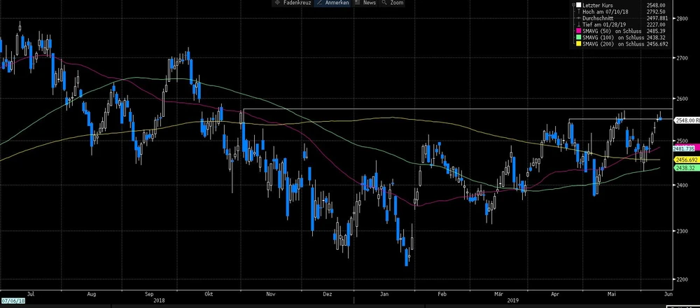 So notieren die Anteile des Öl- und Gasriesen nach dem Ausbruch aus dem langfristigen Abwärtstrend nun kurz vor dem Sprung über den Widerstand bei 2.575 Britische Pence. Sollte es der Dividendenperle nun endlich gelingen, diese Hürde zu überwinden, wäre der Weg nach oben vorerst frei.