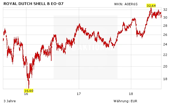 Und die Antwort lautet relativ klar: Ja. Von den 19 Analysten, die sich regelmäßig mit den Anteilscheinen von Shell befassen, raten derzeit zwölf zum Einstieg. Bei vier Experten lautet das Anlagevotum „Halten“, nur drei empfehlen den Verkauf. Das durchschnittliche Kursziel liegt bei 2.952 Britische Pence (umgerechnet 33,22 Euro), was knapp zwölf Prozent über dem aktuellen Kursniveau liegt.