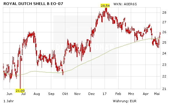 So steht der Dividendenabschlag für die Ausschüttung für das erste Quartal 2017 an. Demnach werden die Shell-Papiere 0,47 Dollar (also knapp 0,42 Euro) tiefer in den Handel starten. Wer die Aktie im Depot hat, muss sich mit der Dividendengutschrift allerdings noch etwas gedulden. Dieser erfolgt erst am 26. Juni. Die wichtigsten Termine für die nächsten Dividendenzahlungen finden Sie hier.